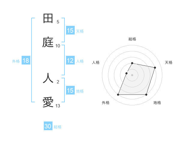 田庭 人愛さんの総格は30画の2点!
