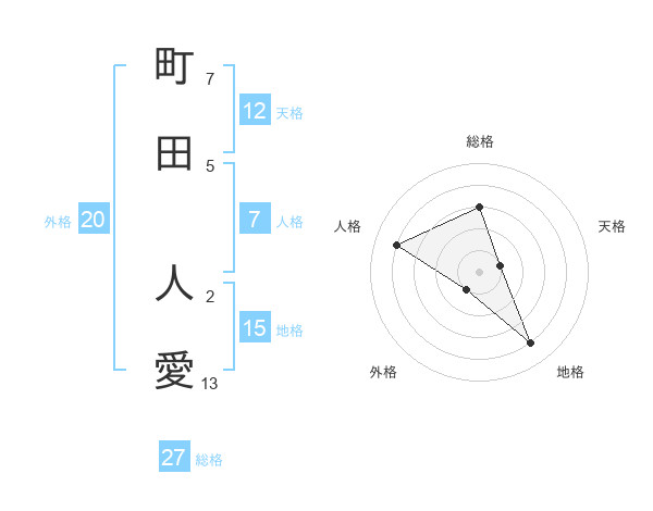 町田 人愛さんの天格は12画の1点!