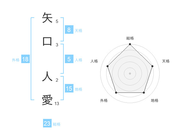 矢口 人愛さんを姓名の画数から五運を鑑定