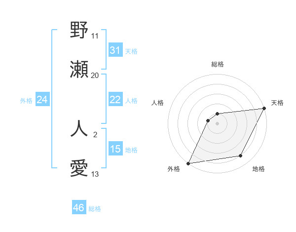 野瀬 人愛さんの天格は31画の5点!
