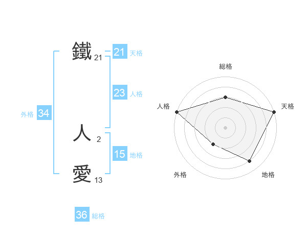 鐵 人愛さんの総格は36画の3点!