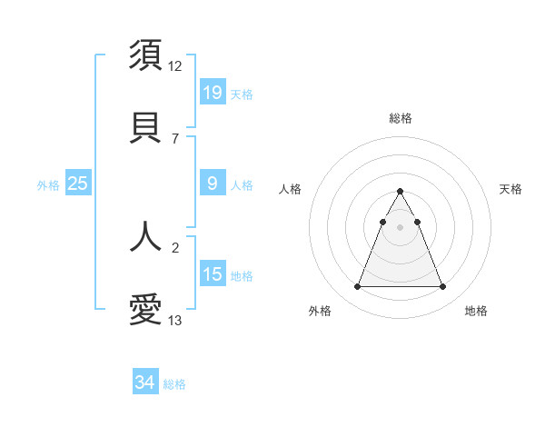 須貝 人愛さんを姓名の画数から五運を鑑定