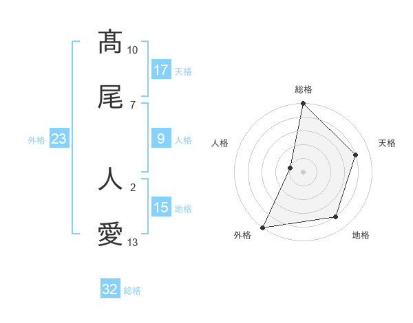 髙尾 人愛さんの総格は32画の5点!