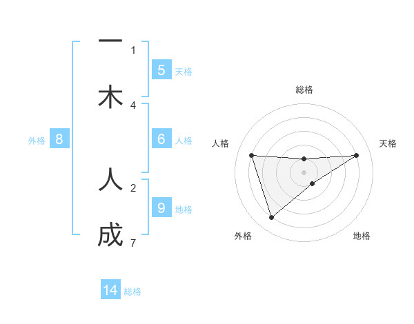 一木 人成さんの天格は5画の4点!
