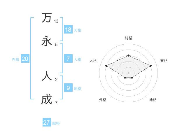 万永 人成さんの総格は27画の3点!