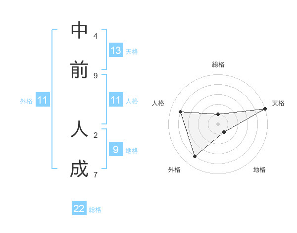 中前 人成さんの天格は13画の5点!