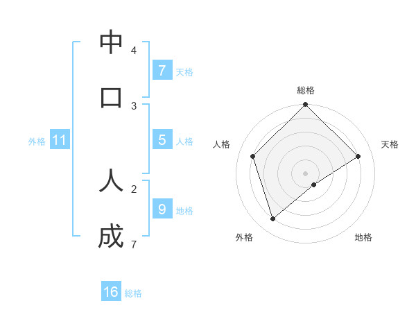 中口 人成さんの総格は16画の5点!