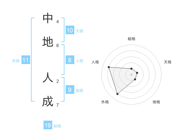 中地 人成さんの外格は11画の4点!