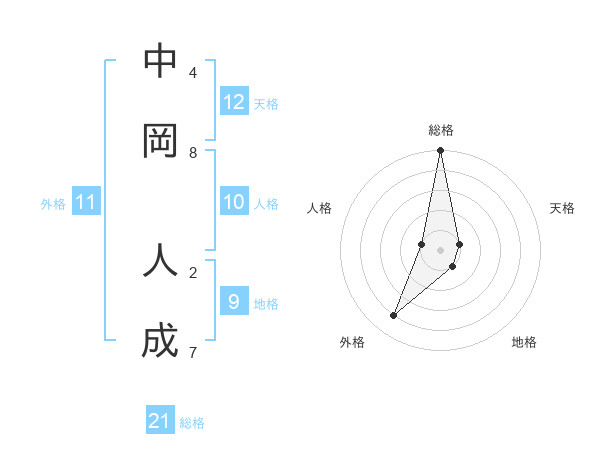 中岡 人成さんの外格は11画の4点!