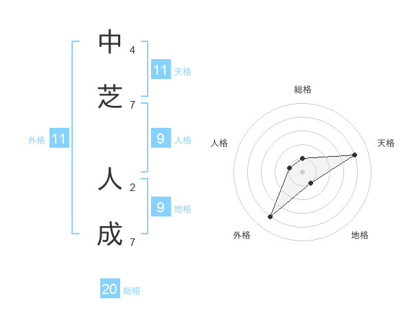 中芝 人成さんの外格は11画の4点!
