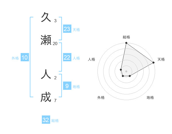 久瀬 人成さんの総格は32画の5点!