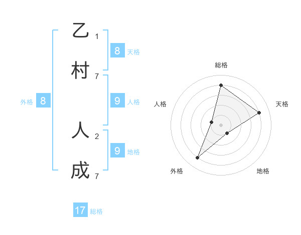 乙村 人成さんの外格は8画の4点!