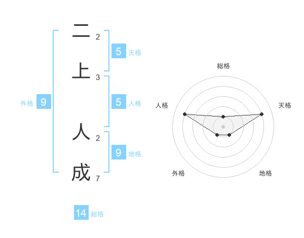 二上 人成さんの天格は5画の4点!