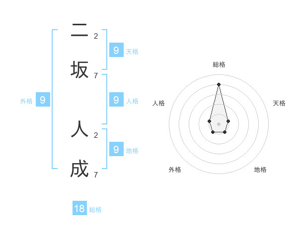 二坂 人成さんの総格は18画の4点!