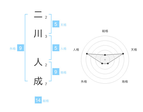 二川 人成さんの天格は5画の4点!