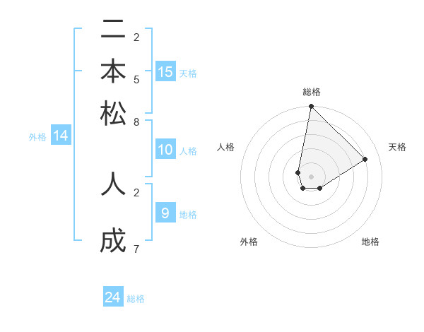 二本松 人成さんの総格は24画の5点!