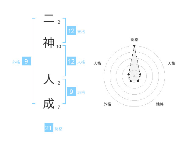 二神 人成さんの総格は21画の5点!