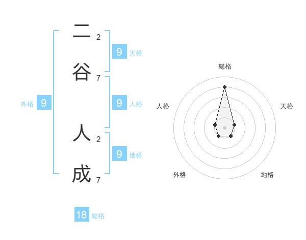 二谷 人成さんの地格は9画の1点!