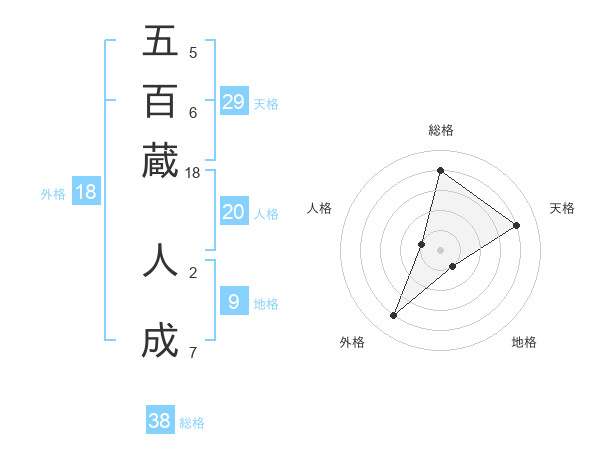 五百蔵 人成さんの総格は38画の4点!