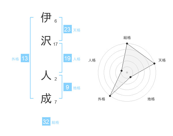 伊沢 人成さんを姓名の画数から五運を鑑定