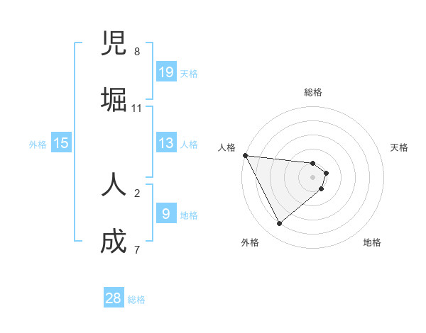 児堀 人成さんの総格は28画の1点!