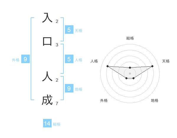 入口 人成さんの総格は14画の1点!