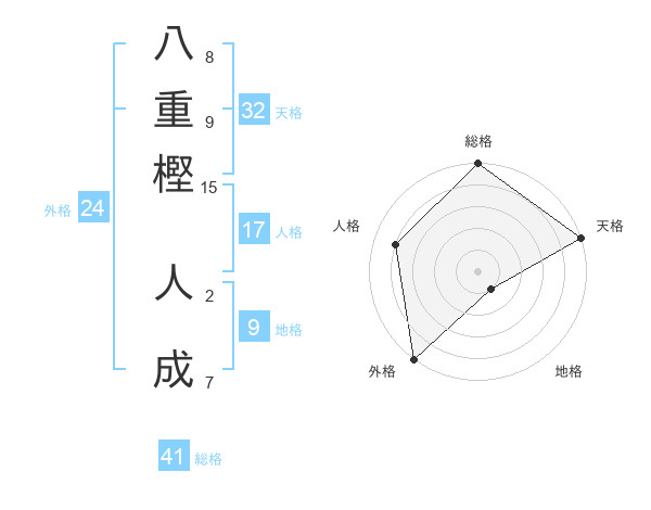 八重樫 人成さんの天格は32画の5点!