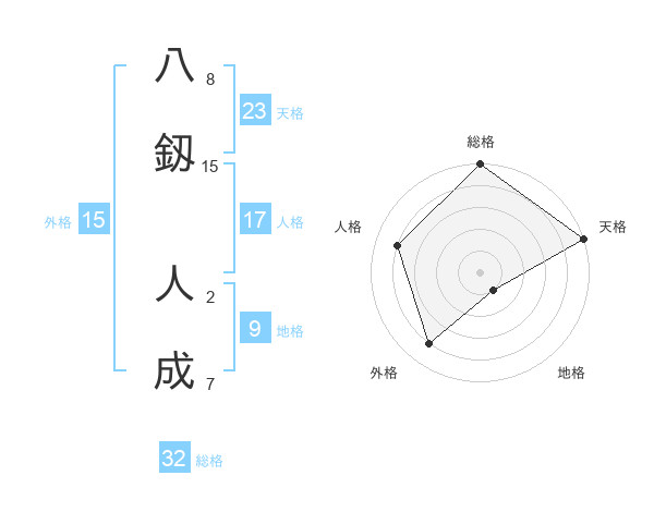 八釼 人成さんの総格は32画の5点!