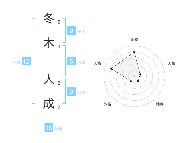 冬木 人成さんの総格は18画の4点!