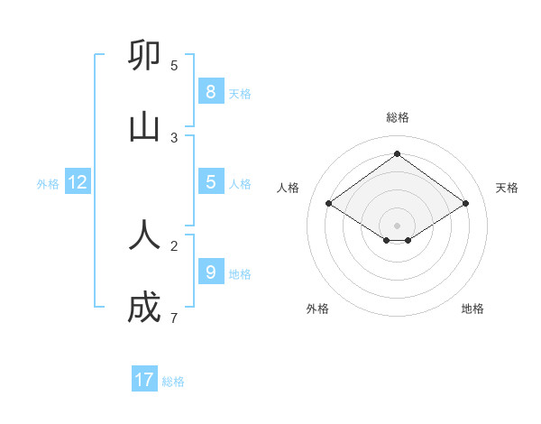 卯山 人成さんの天格は8画の4点!