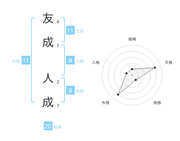友成 人成さんの外格は11画の4点!