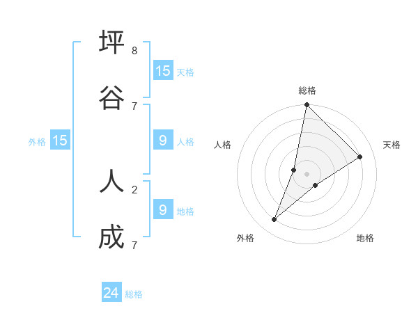 坪谷 人成さんを姓名の画数から五運を鑑定