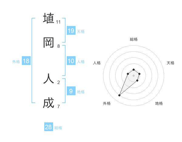 埴岡 人成さんの総格は28画の1点!