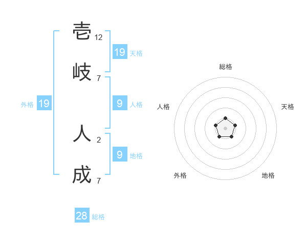 壱岐 人成さんの天格は19画の1点!