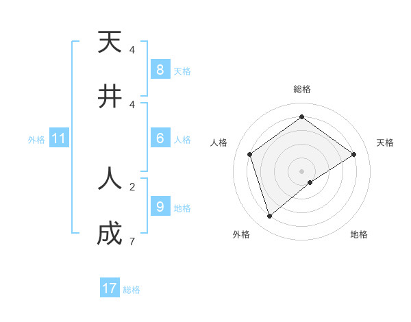天井 人成さんの総格は17画の4点!