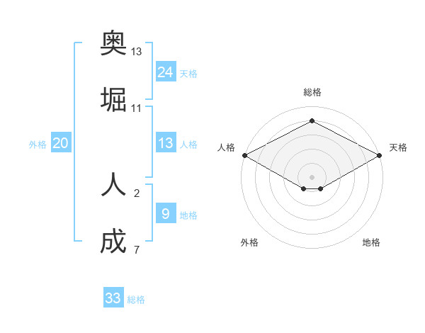 奥堀 人成さんの総格は33画の4点!