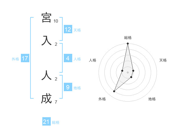 宮入 人成さんの総格は21画の5点!