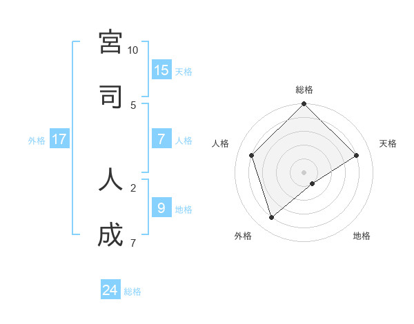 宮司 人成さんの総格は24画の5点!