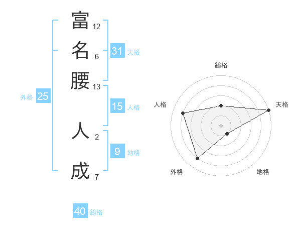 富名腰 人成さんの天格は31画の5点!