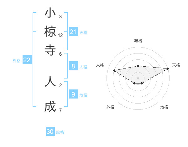 小椋寺 人成さんの天格は21画の5点!