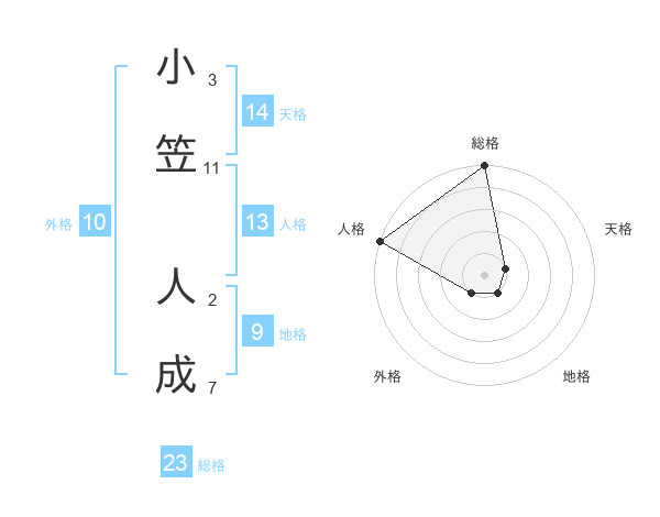 小笠 人成さんの総格は23画の5点!