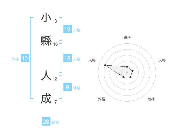 小縣 人成さんの総格は28画の1点!