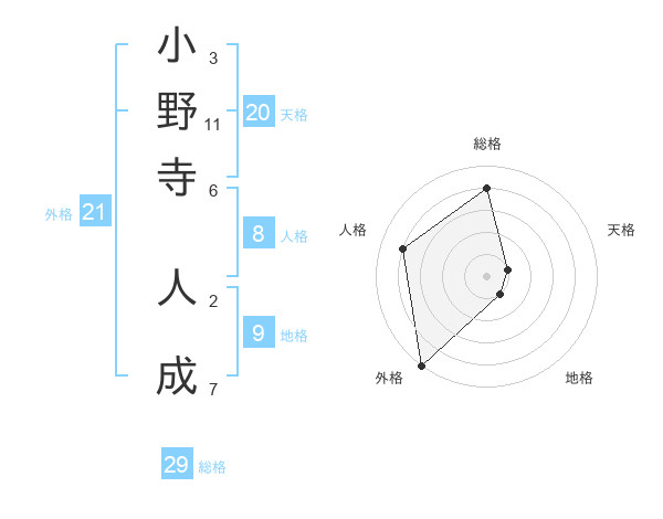 小野寺 人成さんの総格は29画の4点!