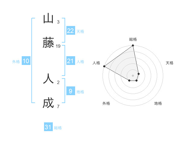 山藤 人成さんの総格は31画の5点!