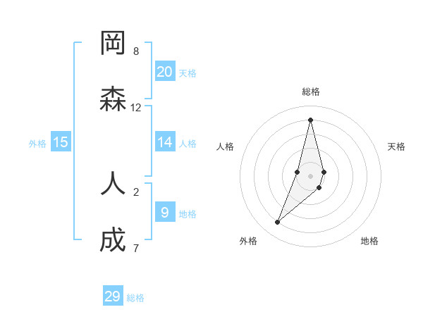 岡森 人成さんの総格は29画の4点!