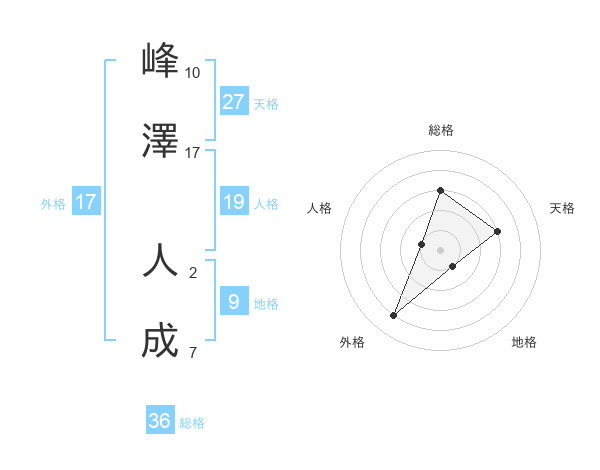 峰澤 人成さんの天格は27画の3点!