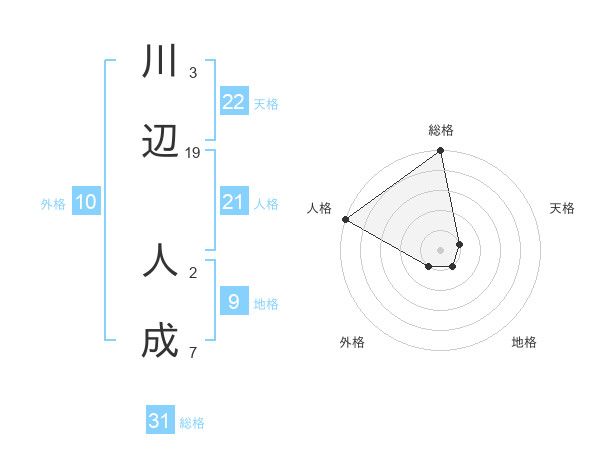 川辺 人成さんの総格は31画の5点!