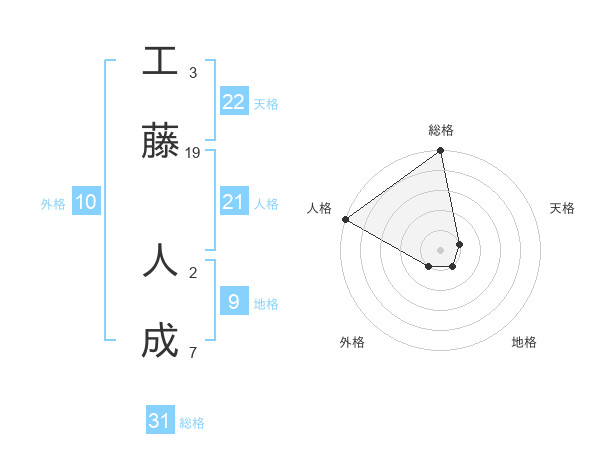 工藤 人成さんの総格は31画の5点!
