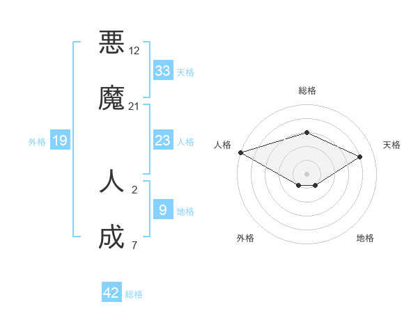 悪魔 人成さんを姓名の画数から五運を鑑定