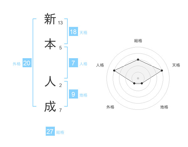 新本 人成さんの総格は27画の3点!